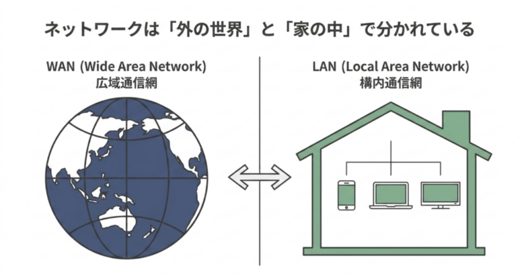 • WANは「広域通信網」の略で、インターネット(外の世界)につながる入口