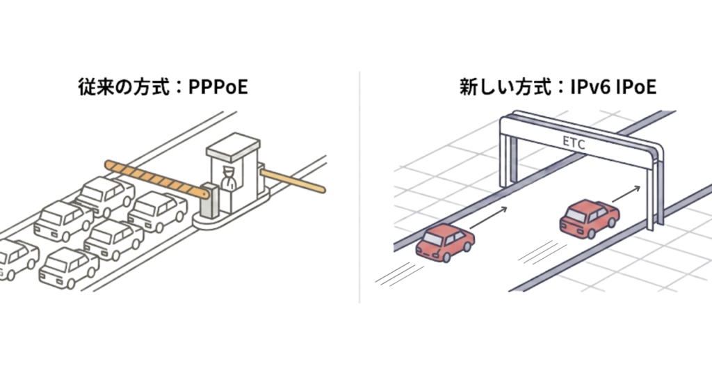 インターネットが遅いと感じる原因の一つに、回線の混雑があります。従来の「PPPoE方式」は、多くの利用者が集中する時間帯に速度が落ちやすい傾向があります。